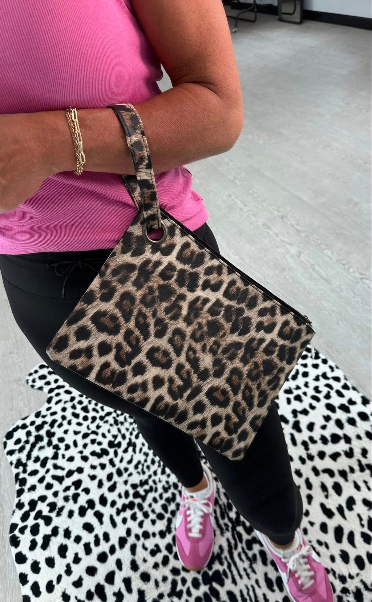 - Large Cheetah clutch with wristlet strap