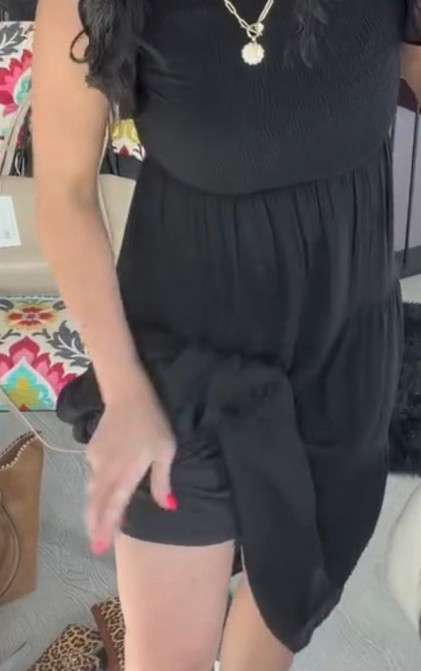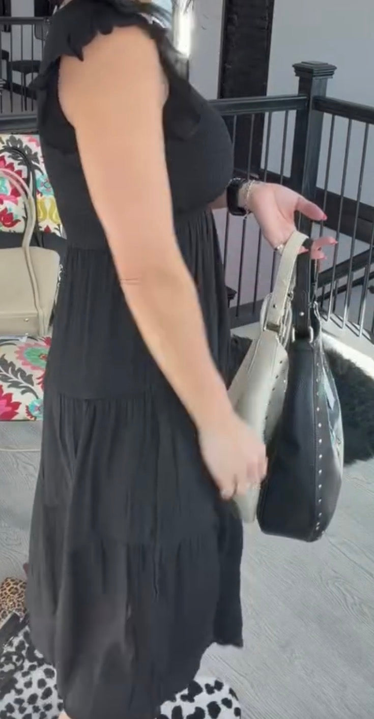 Woven Smocked Ruffle Sleeve Midi Dress